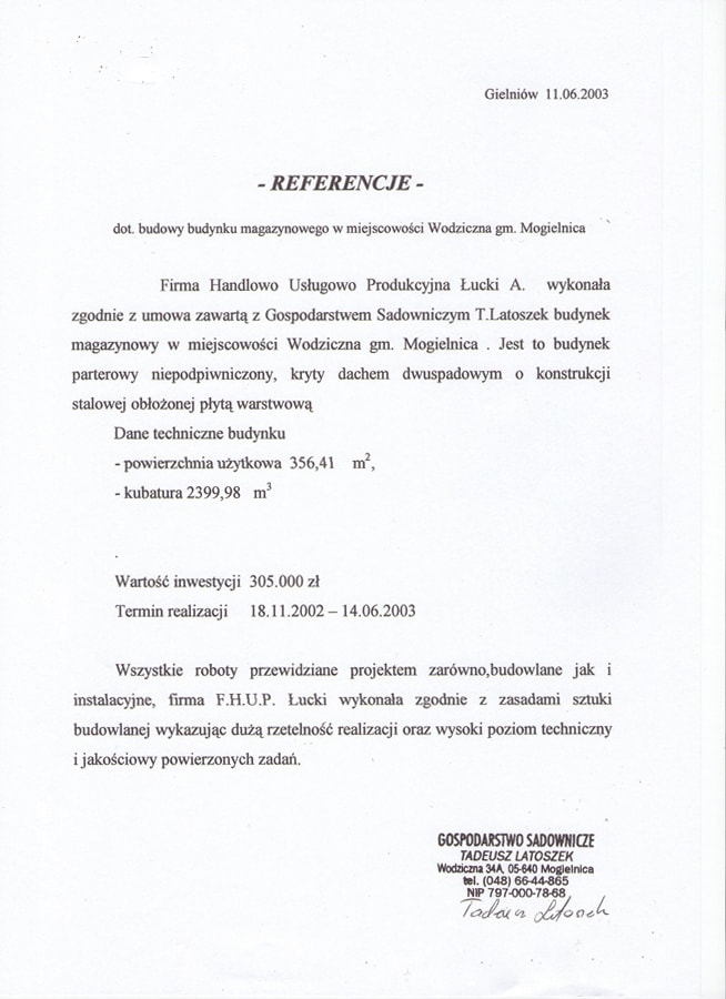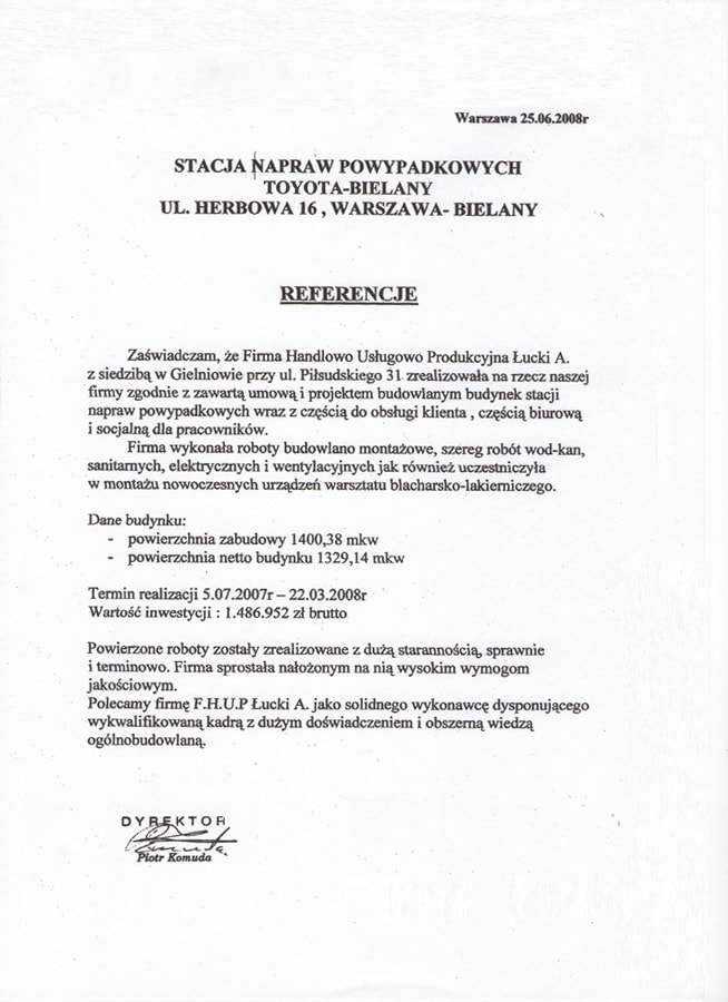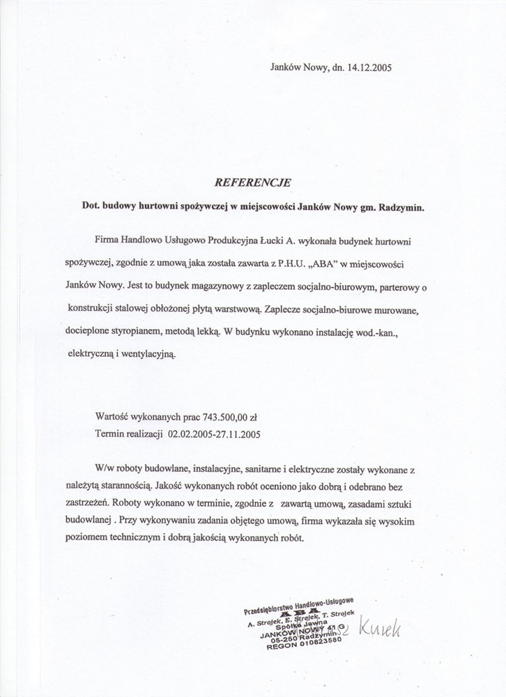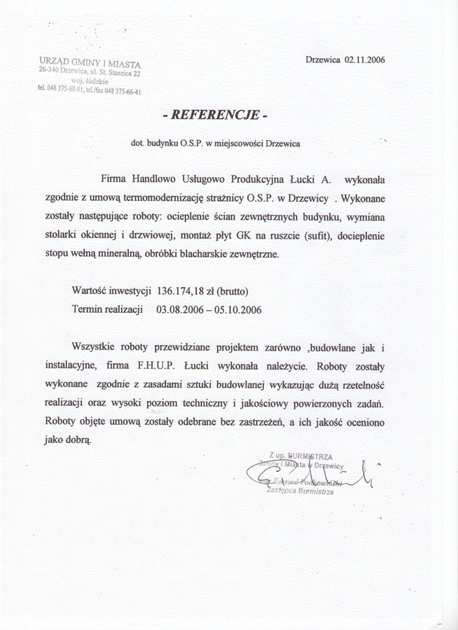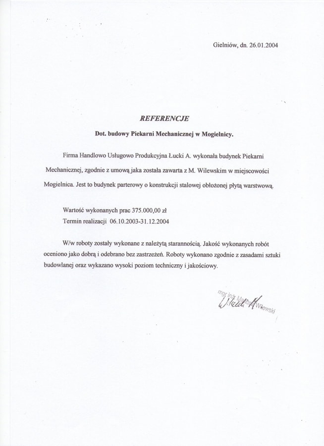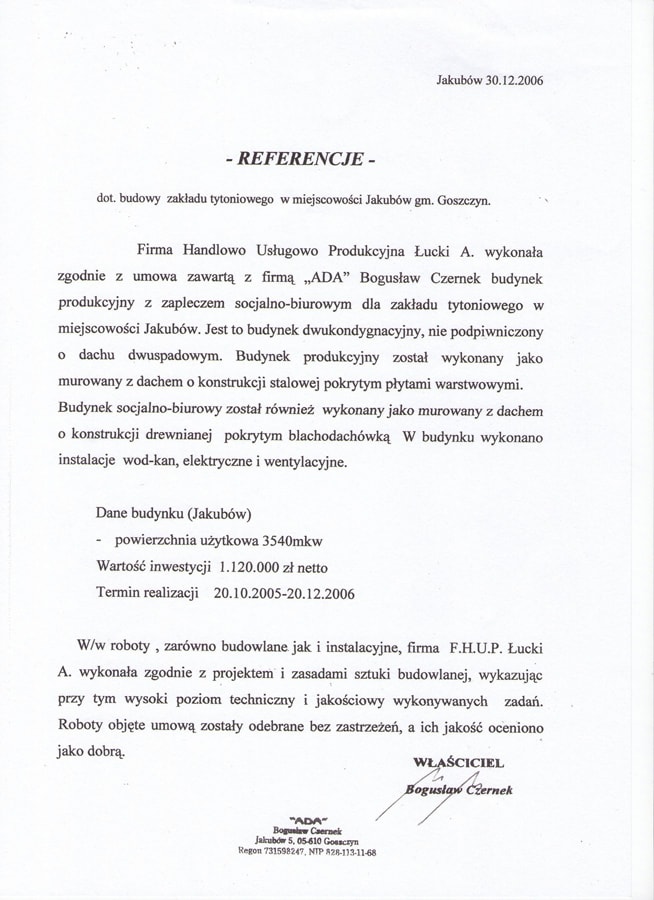Zapraszamy do zapoznania się z jednymi z wielu naszych referencji, które zostały wystawione przez zadowolonych Klientów z którymi mieliśmy przyjemność współpracować.
